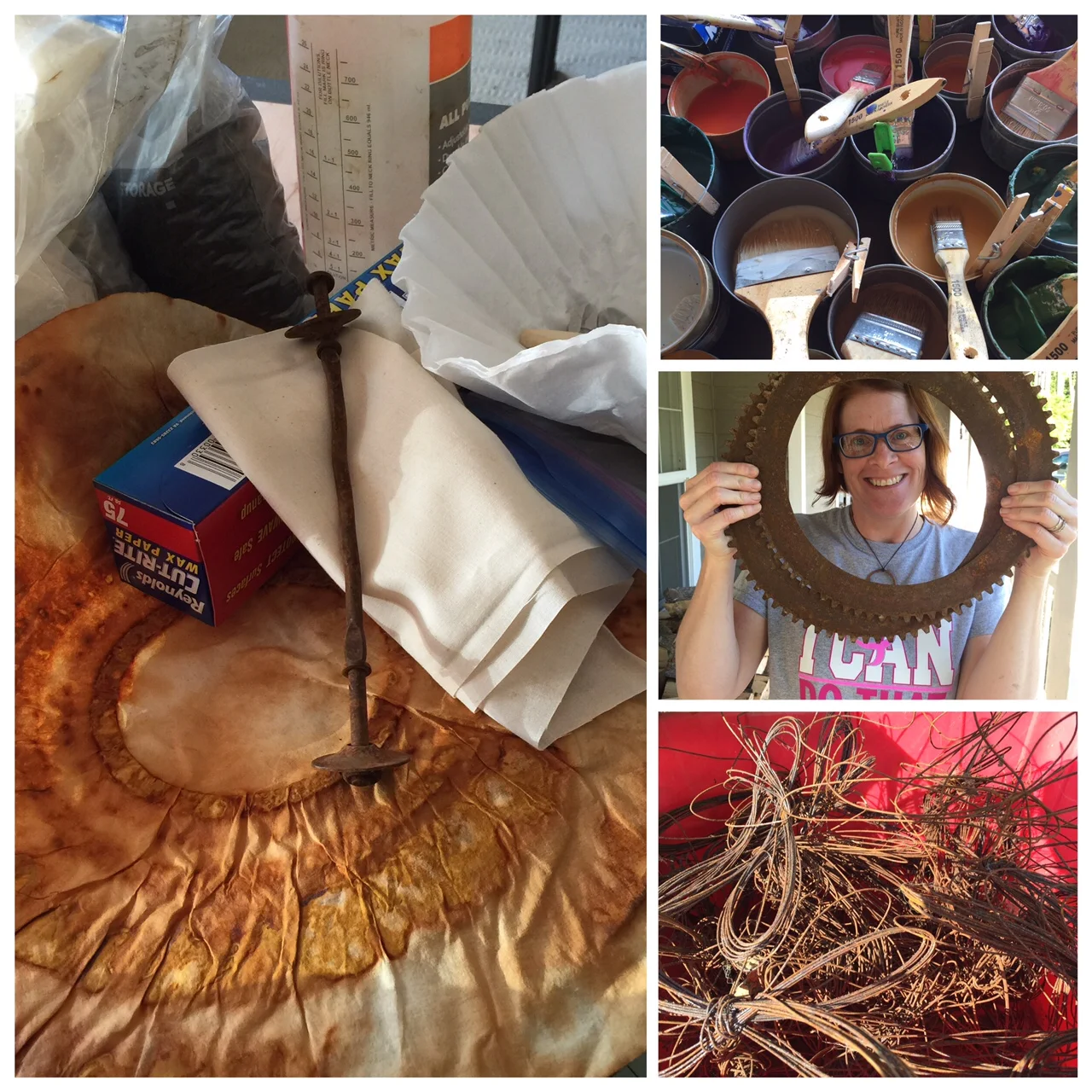 The recent Dyeing to Rust workshop with rusting guru, Pam Nichols, was dusty, crusty, rusty and waxy. We've added 9 more rustaholics to our art tribe.